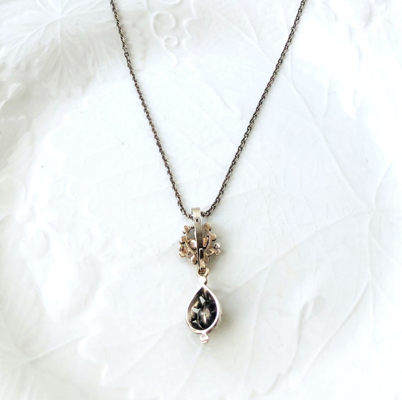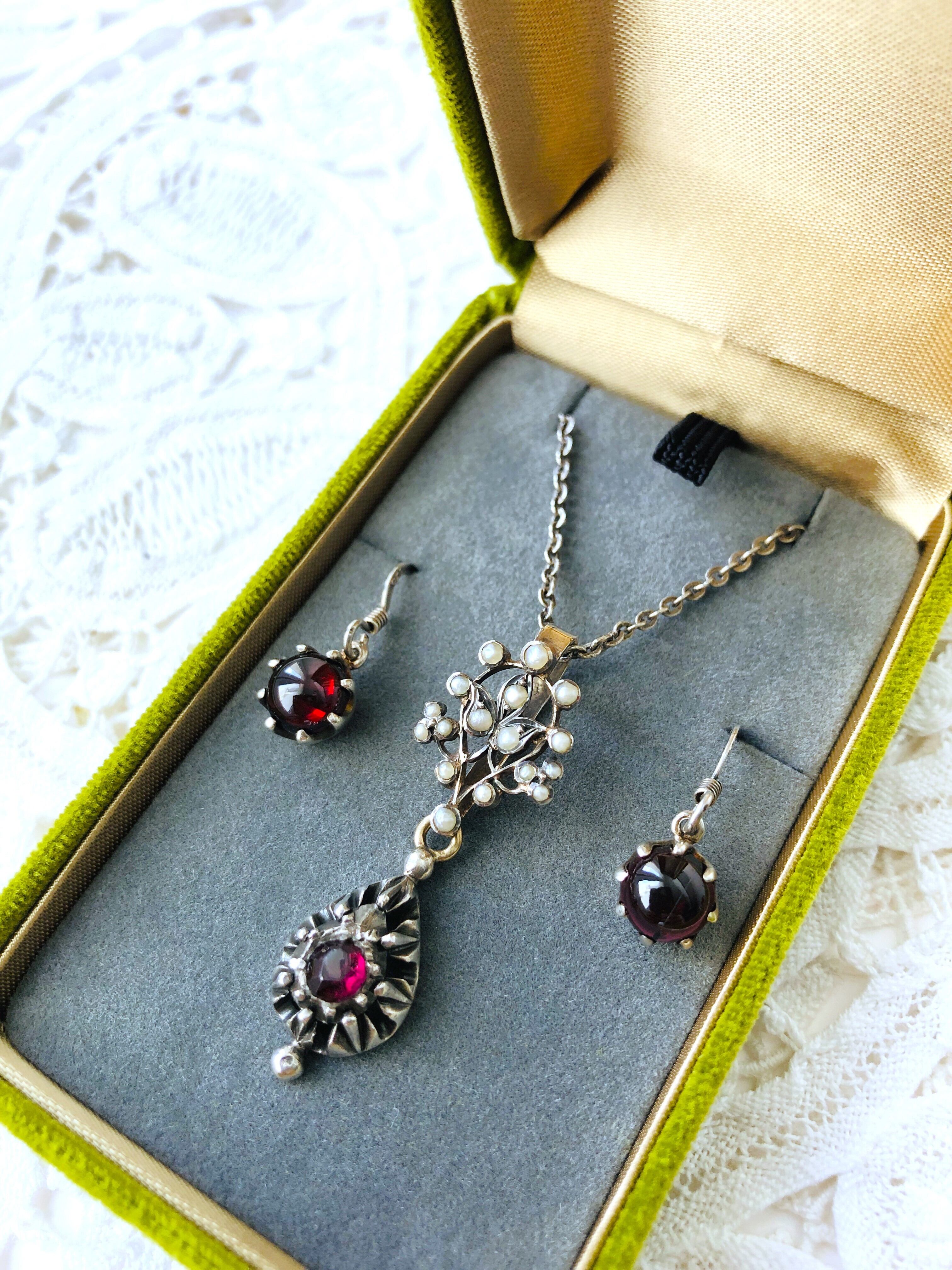 揺れるガーネットと小粒パールの シルバー ペンダント