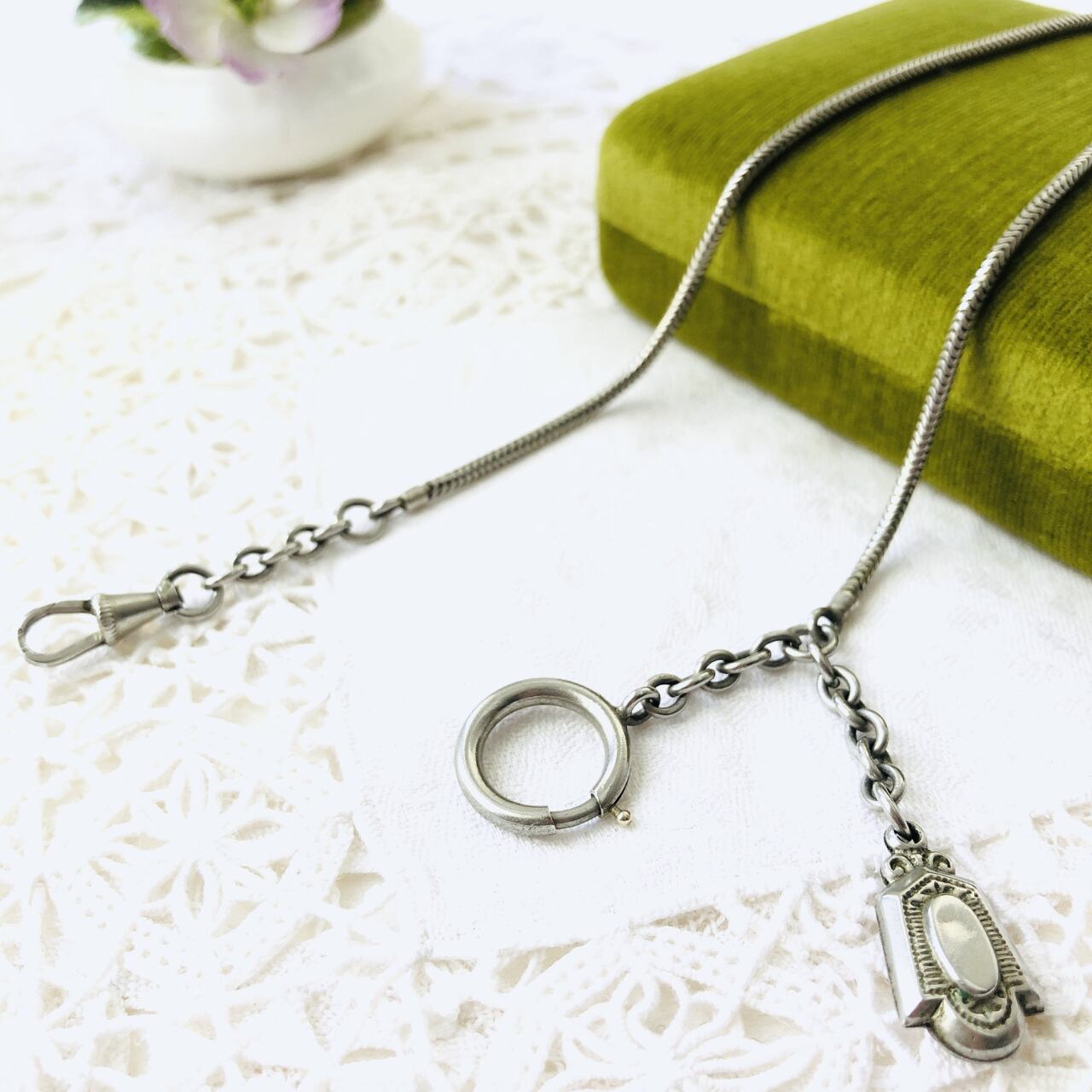 女性用の小さな懐中時計にぴったりなサイズの、細身で華奢なシルバーチェーン。