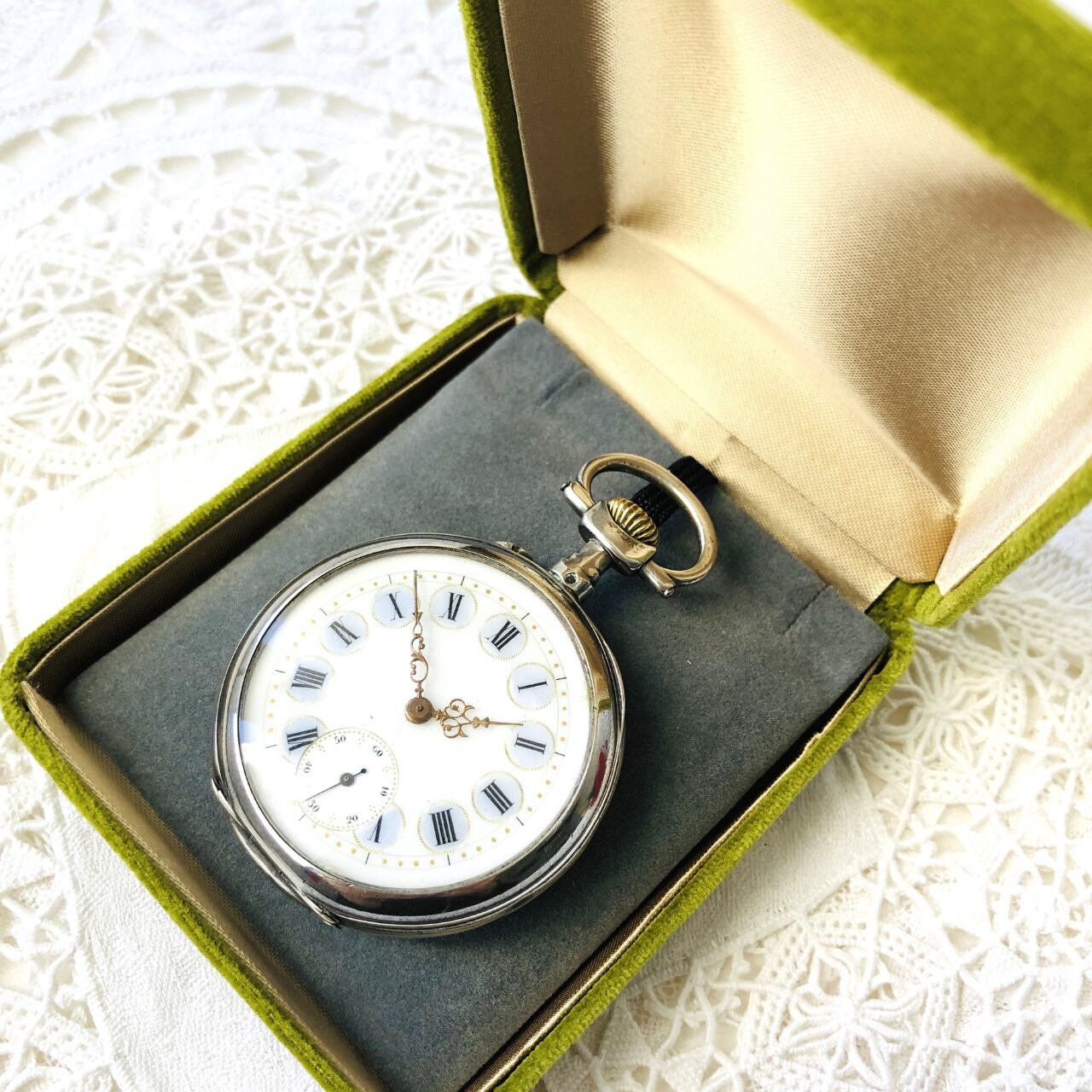 清楚で見やすい文字盤 機械式懐中時計 ボタン式 (チェーンは別売り)