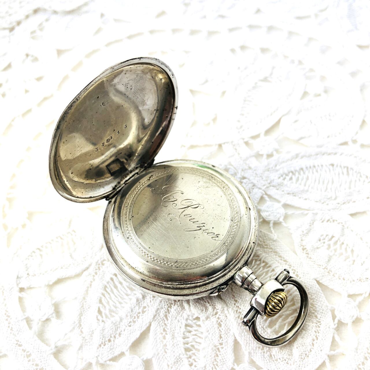 エレガントな文字盤と、背面の草木模様が特徴的な機械式時計。 文字盤が見やすい、一般的な紳士用のサイズに近いながら、フェミニンさも漂います。 初期のリューズ式で、リューズの隣にボタンが付いています。 リューズでバネを巻きますが、時刻合わせの際には、ボタンを押しながらリューズを回します。